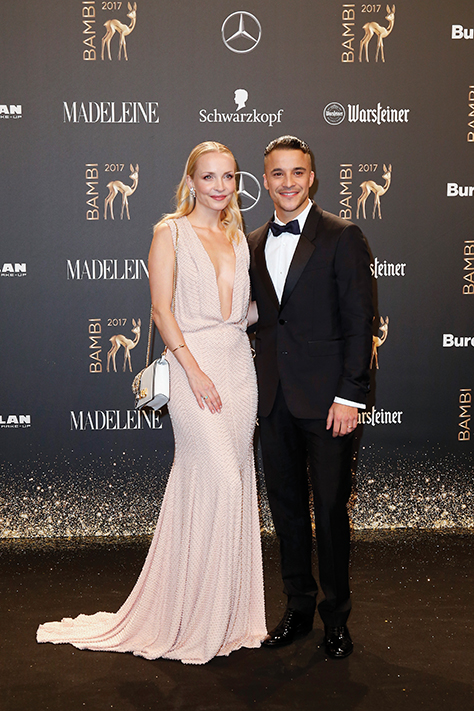 BERLIN, GERMANY – NOVEMBER 16: Janin and Kostja Ullmann arrive at the Bambi Awards 2017 at Stage Theater on November 16, 2017 in Berlin, Germany. (Photo by Isa Foltin/Getty Images for Kryolan) *** Local Caption *** Kostja Ullmann;Janin Ullmann