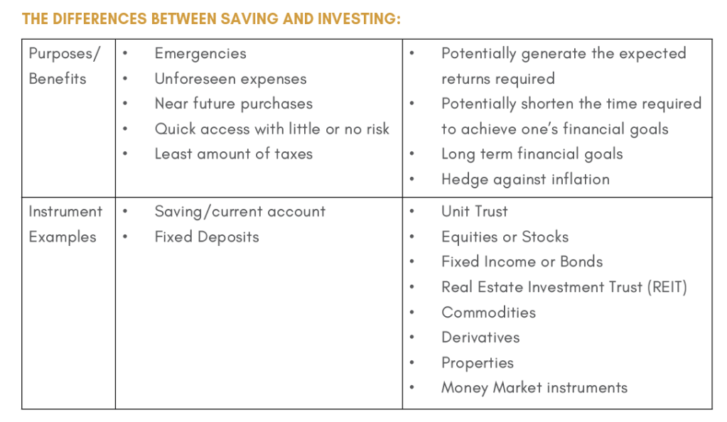 These developments, together with the undetermined duration of this prolonged pandemic and the adverse effects of a low interest rate environment, may make a person doubt their wealth strategy, which is why having an actual plan for your money has become more crucial than ever. One way to solidify your wealth involves saving and investing interchangeably, but with key differences; it is important to note that these two instruments serve different purposes.