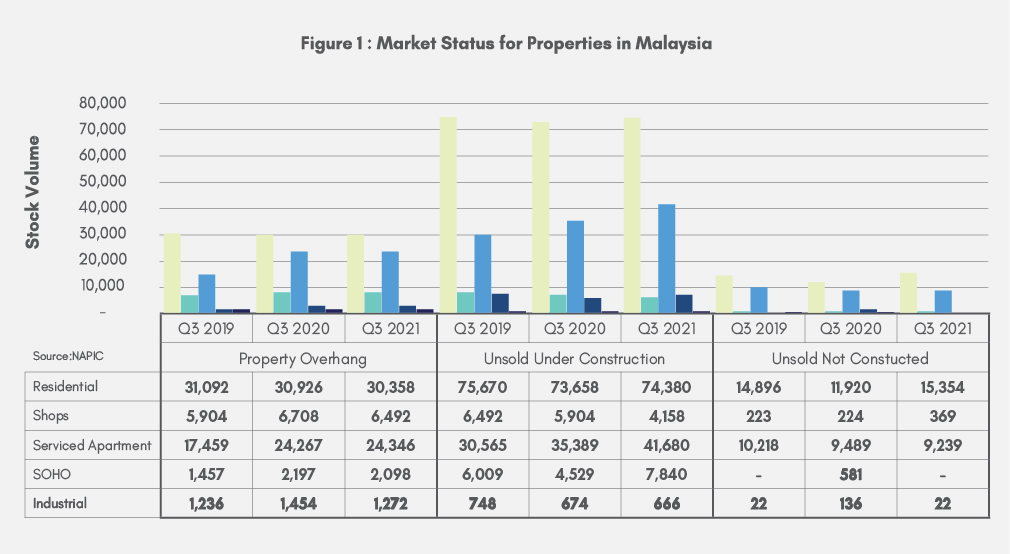 The property market’s performance for the third quarter of 2021 (Q3 2021) is expected to remain stagnant due to the impact from enforcement of Movement Control Order (MCO 3.0),. Pent-up demand is expected by early Q1 2022 after the government lifted the MCO 3.0.