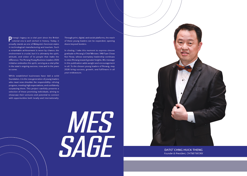 The Penang Young Business Leaders 2026 edition is a timely and meaningful recognition of the dynamic individuals who are redefining what it means to lead in today’s business landscape. These young leaders span a wide spectrum – from technology and manufacturing to creative industries and social enterprises reflecting the diversity and agility of Penang’s economic ecosystem. The journey toward the Penang2030 vision requires bold, future-oriented leadership. Young business leaders play a critical role in this transformation. Through innovation, sustainable practices, and inclusive growth strategies, they are not just creating jobs – they are creating impact. Their success signals a broader readiness of our society to embrace change, adopt digitalisation, and lead with purpose.