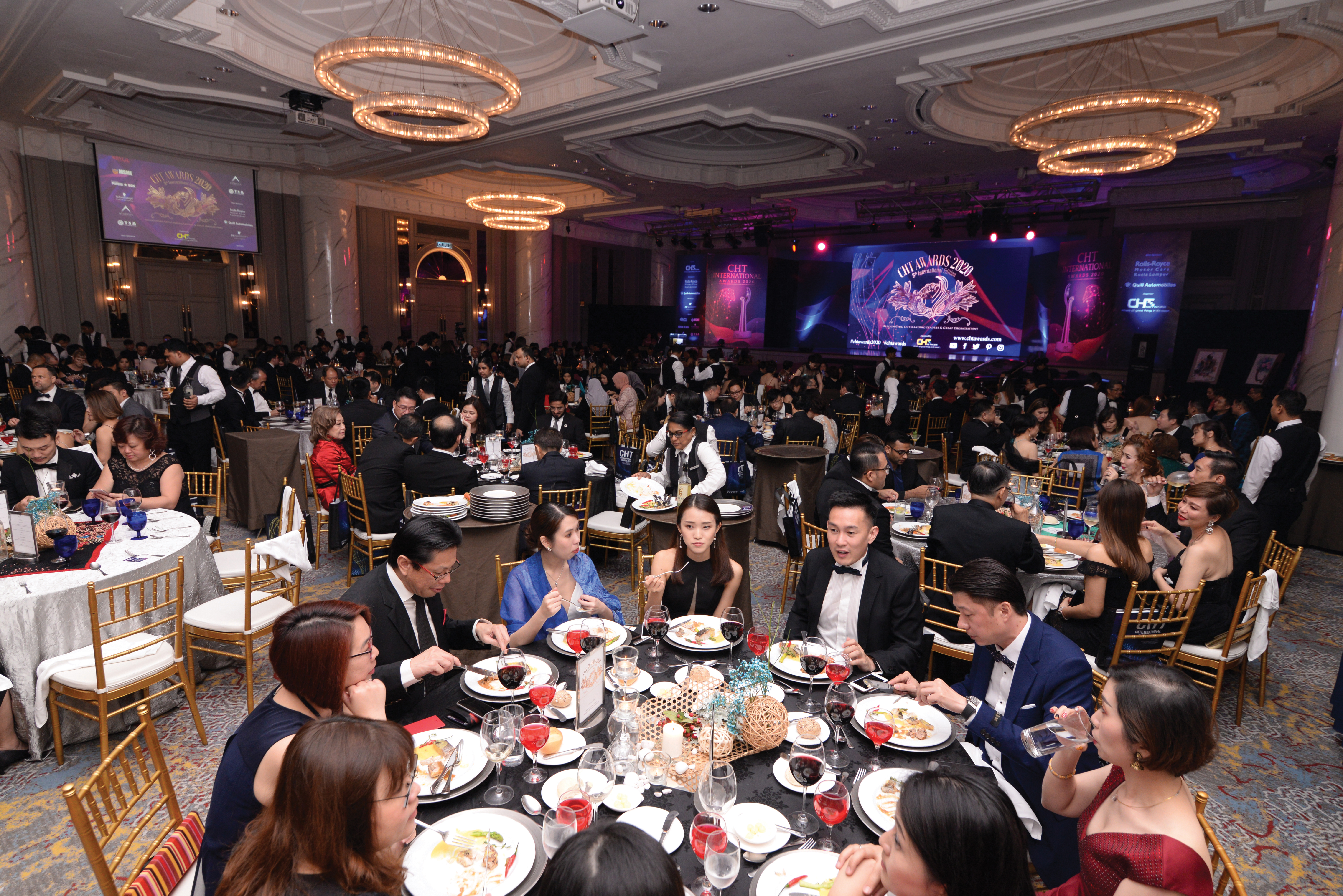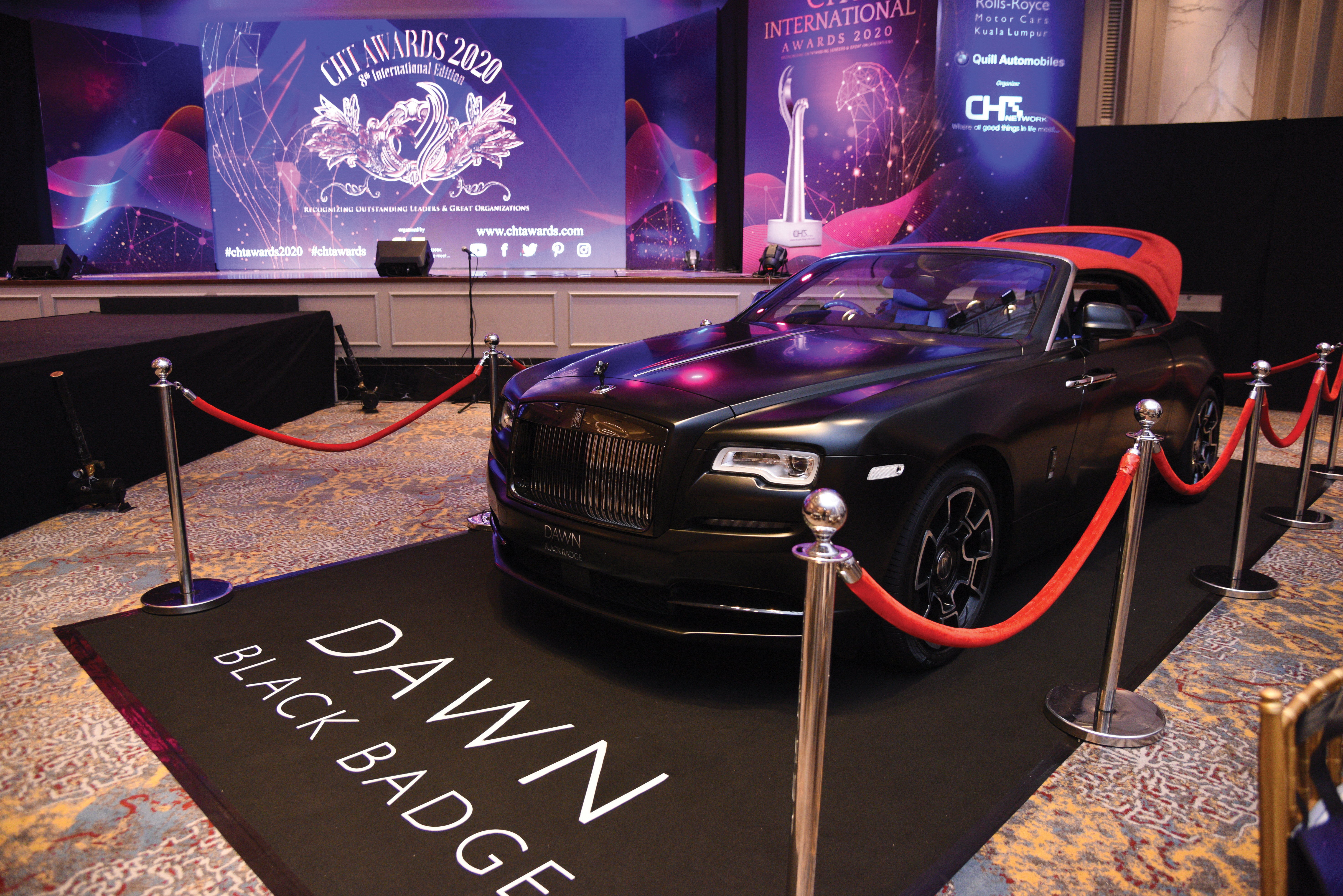This year’s CHT Awards was held at JW Marriott KL. The event saw Dato Seri Michael Chong presented with the CHT Lifetime Achievement trophy by Guest Of Honor Dato Lokman Hakim Ali, Secretary General of Ministry of International Trade & Industry. With an impressive guest list of 400 movers and shakers, industry magnates came from near and far. Gentlemen were in their best suits and ladies dressed to the theme ‘Fire & Ice’. It was truly a night to remember when guests posed for the red carpet along with a handsome white BMW 320i Sports by Quill Automotive. At 7.30pm, the doors to the Grand Ballroom were opened and guests were welcomed into an impressive dining space that was fit for kings! Many guests were also surprised that they would be dining with a Rolls-Royce Black Badge in the hall!
