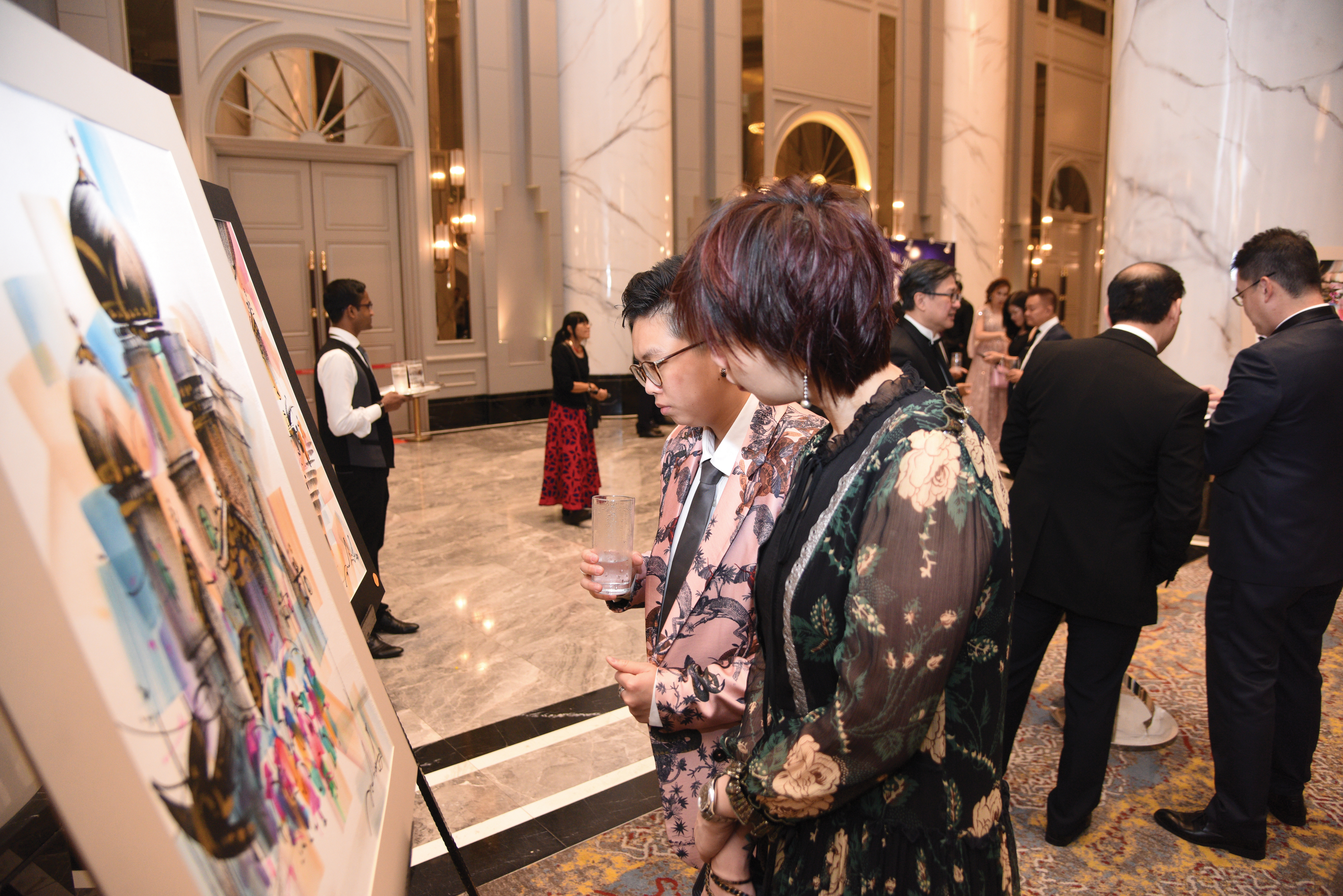 The evening came to a close with three main categories up for auction. The first was a 18k white gold set with an oval cabochon natural Tanzanite of 7.12 carat surrounded by eight rare color-change Garnets. The ring was designed by Royals Blue accompanied with a certificate of authenticity AGL. 3 fine watercolor paintings donated by Professor Dr. Suchat Vongthong were collected by Mr. and Mrs. Edward Mai and Dato Dr. Nick Ng whereas 6 high fashion dresses by couture designer Ho Kok Leong were sold within a few minutes. Part of the proceeds of this auction will go to charity.